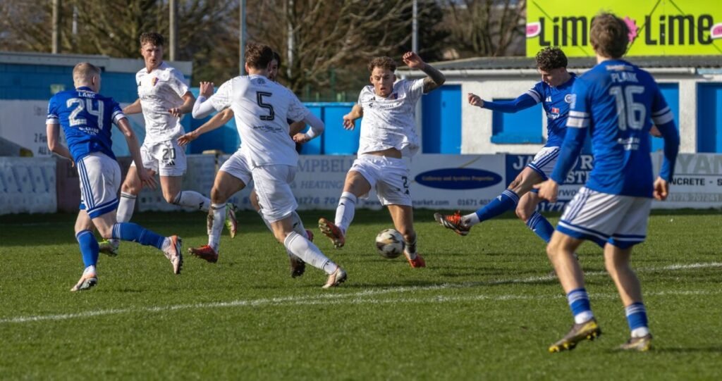 Max Currie spread himself superbly to make the block as Stranraer held on.